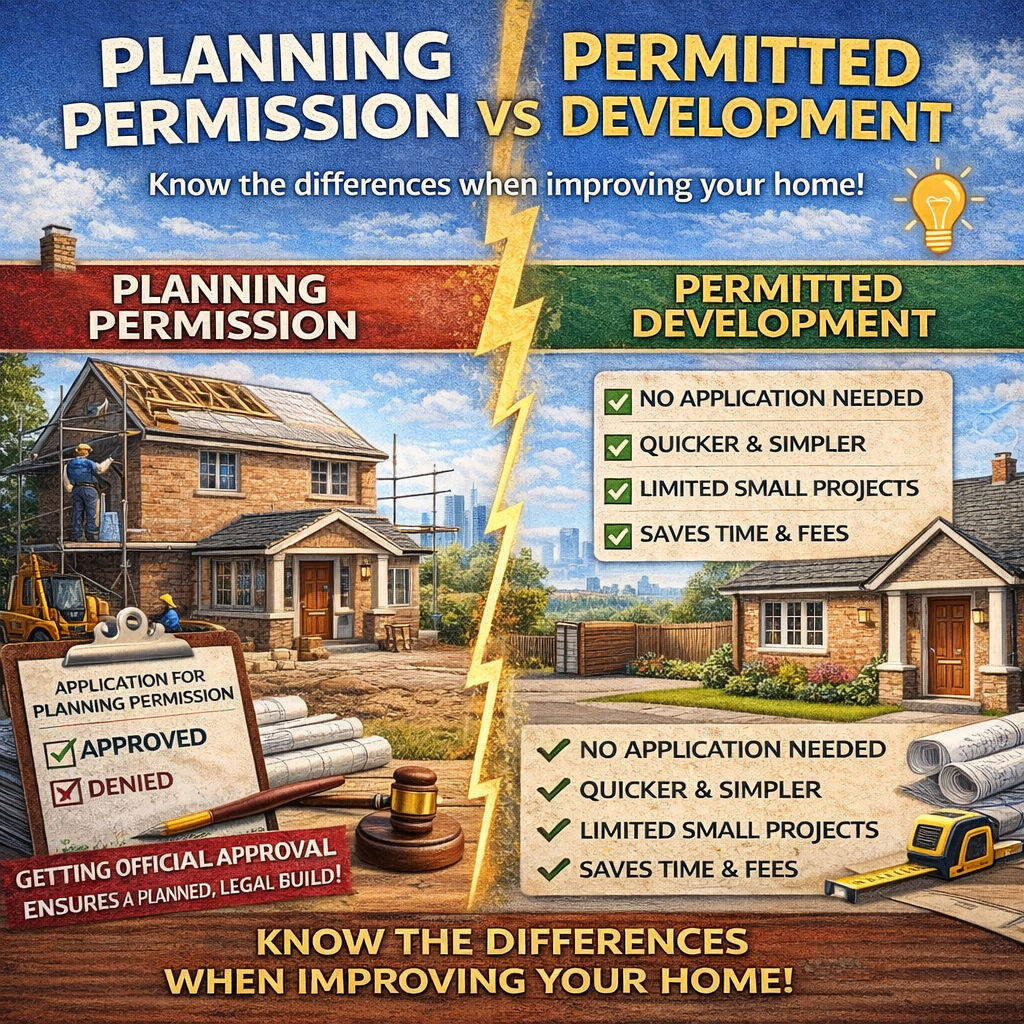Planning permission and permitted development are not interchangeable shortcuts. Planning permission resolves uncertainty before building begins through professional judgement. Permitted development is a strict legal allowance that only works when its limits are met exactly. Most problems arise when homeowners treat permitted development as the easier or safer option, when in reality it often carries greater long-term risk.